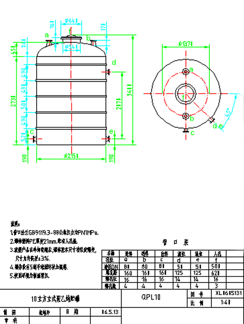 聚乙烯儲罐、鋼襯塑儲罐參考示意圖
